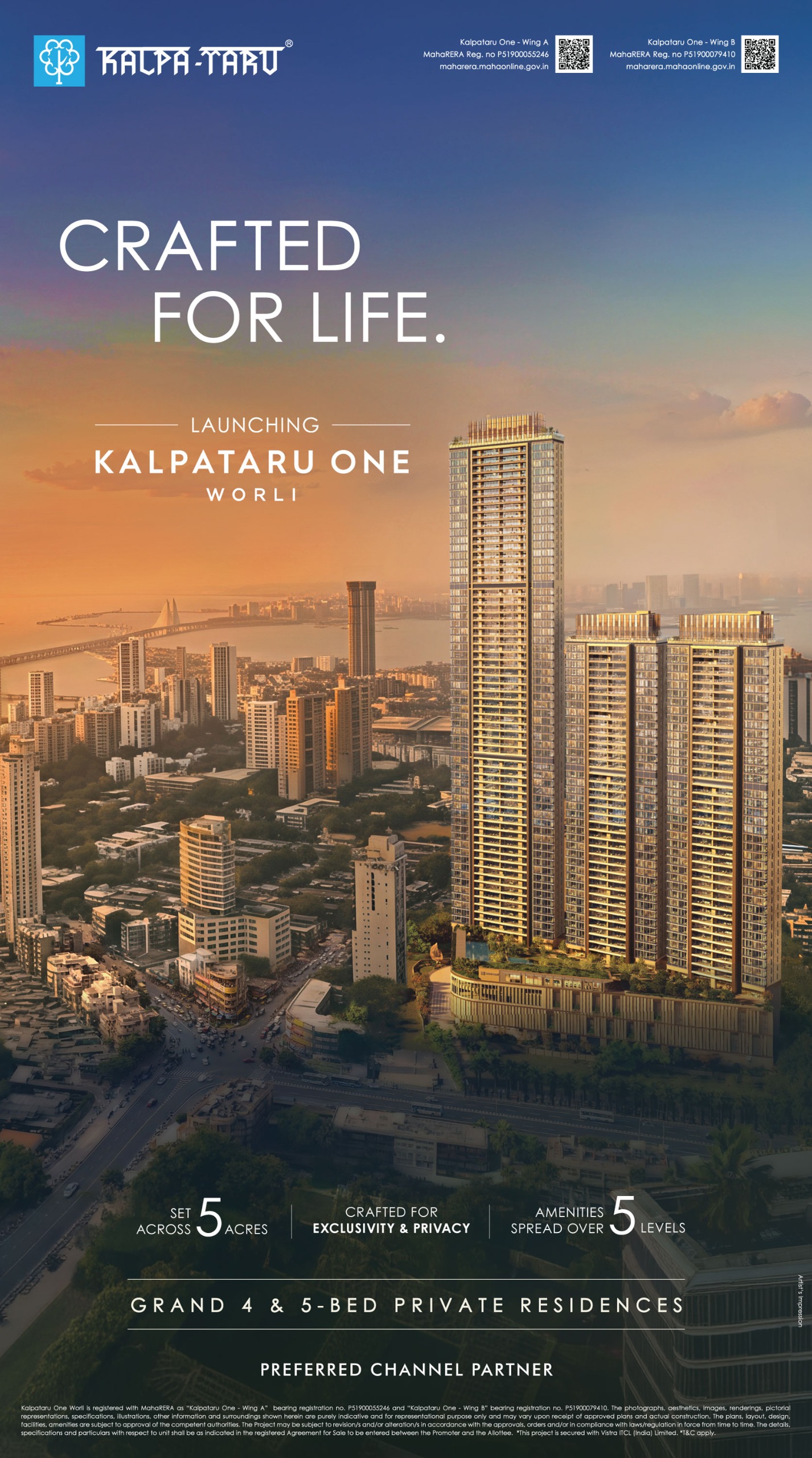 Kalpataru One will be constructed on 5 acres of land parcel, 3 towers with G+10P+37/60 floors having 4 BHK, 5 BHK premium residences. Kalpataru in Worli Project is Near Worli Naka, Worli, Mumbai with - Podar hospital - 600m, Worli Sea Face - 1.6km, Coastal Road - 1.5km. Kalpataru One Worli Project first is internal amenities - Vitrified Tiles, Branded Fittings, Kitchen Platform, Anodised Aluminium Windows Powder Coated Finish & many more. Kalpata...u Group Worli External Amenities Project has 35+ luxurious amenities with likes of - Swimming pool, Kid's Pool, Indoor Pool, Gymnasium, Multi -Purpose Court, Cricket Pitch & Many More. Kalpataru One Mumbai Project has one type of car parking facility - Podium. Kalpataru Worli Project Possession - Rera Possession - December 2032 and Target Possession - December 2030. Carpet Area & Floor Plan Kalpataru Worli New Project has 4BHK, 5BHK premium residences with - 4BHK - 3562 sqft and 5BHK - 4749 sqft. Kalpataru One Floor Plan will have 6 flats 2 lifts & 1 staircase on each floor. Kalpataru Worli Naka Project maintenance varies with the configuration and the carpet area which are as follows- 4BHK - Rs 115000 per month and 5BHK - Rs 152000 per month. Worli One Prices & its details can be found in the price section & Kalpataru New Launch Worli brochure can be downloaded from the link mentioned below. Project has been praised by the home buyers & Kalpataru Group Worli review is 4 out of 5 from over all the clients who have visited the site.